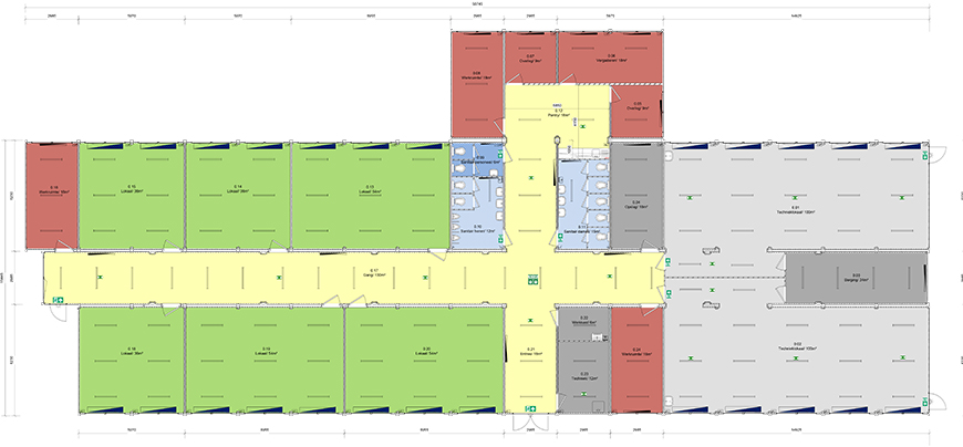De tijdelijke huisvesting bestaat uit koppelbare units. Deze moeten voldoen aan het meest recente bouwbesluit. De lokalen moeten ook hetzelfde voorzieningenniveau hebben als in het huidige gebouw. In het gebouw zijn in totaal acht lokalen. Daarbij gaat het om twee technieklokalen en daarnaast drie grote en drie kleine theorielokalen. Verder zijn er enkele kleine werk- en overlegruimten, technische ruimten en de noodzakelijke sanitaire groepen.